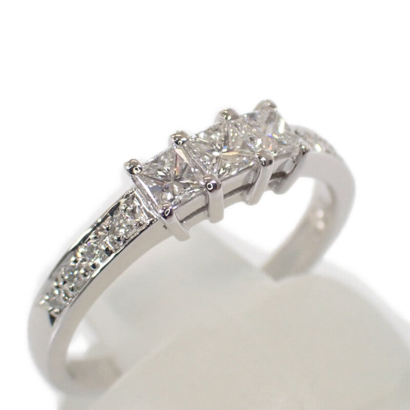 デザインジュエリー 3連 スクエアカット リング K18ホワイトゴールド 9号 ダイヤモンド 9 レディース【中古】【Aランク】