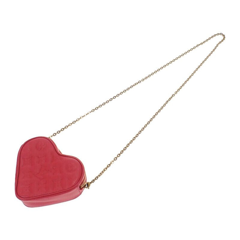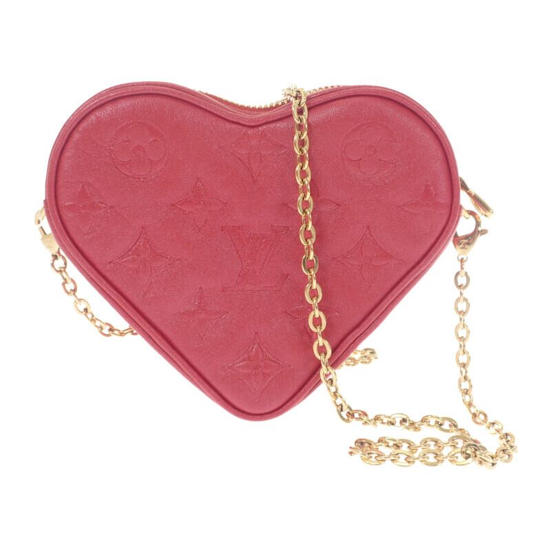 ルイヴィトン LOUIS VUITTON ハートオンチェーン ポーチ M80837 モノグラム ショルダーバッグ レザー レッド ゴールド金具 レディース【中古】【Aランク】