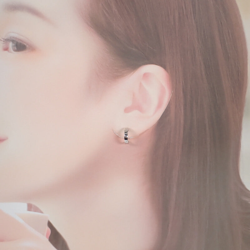 ホワイトゴールドのフープにはアイコニックなビスモチーフが等間隔に配置されており、永遠の愛を象徴しています。