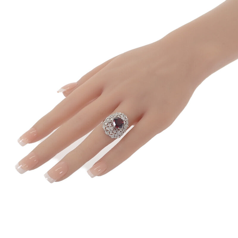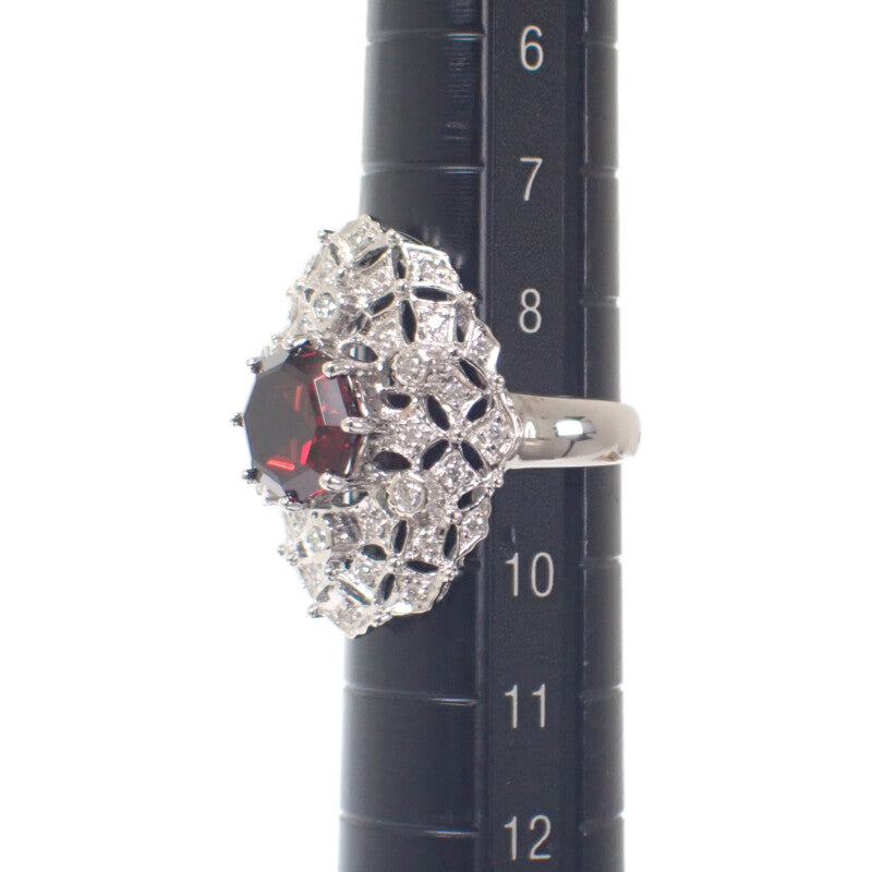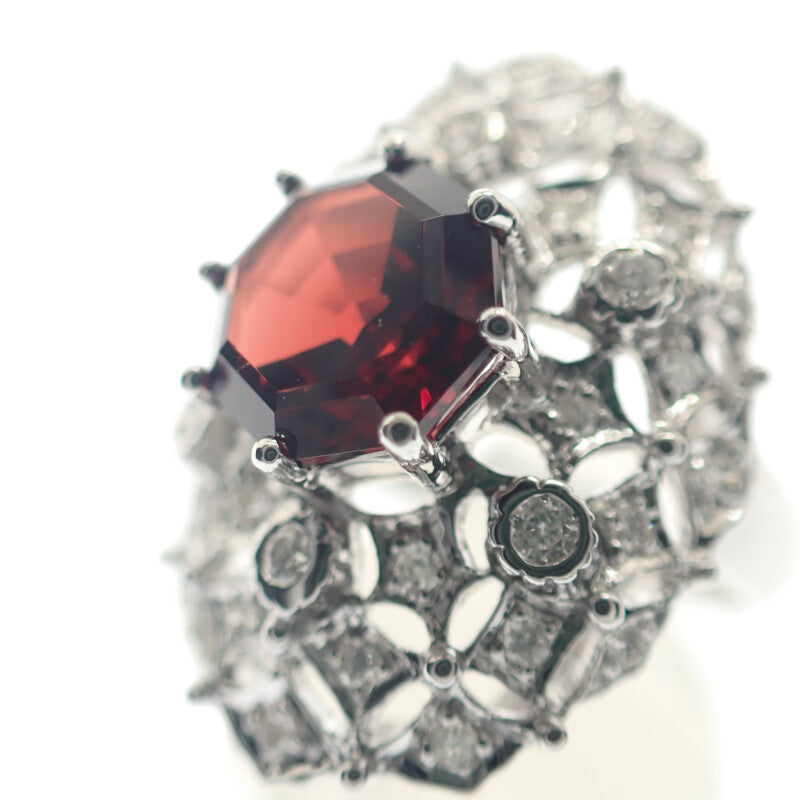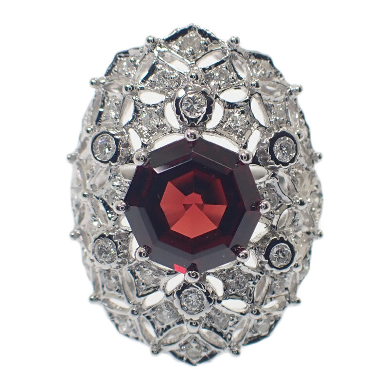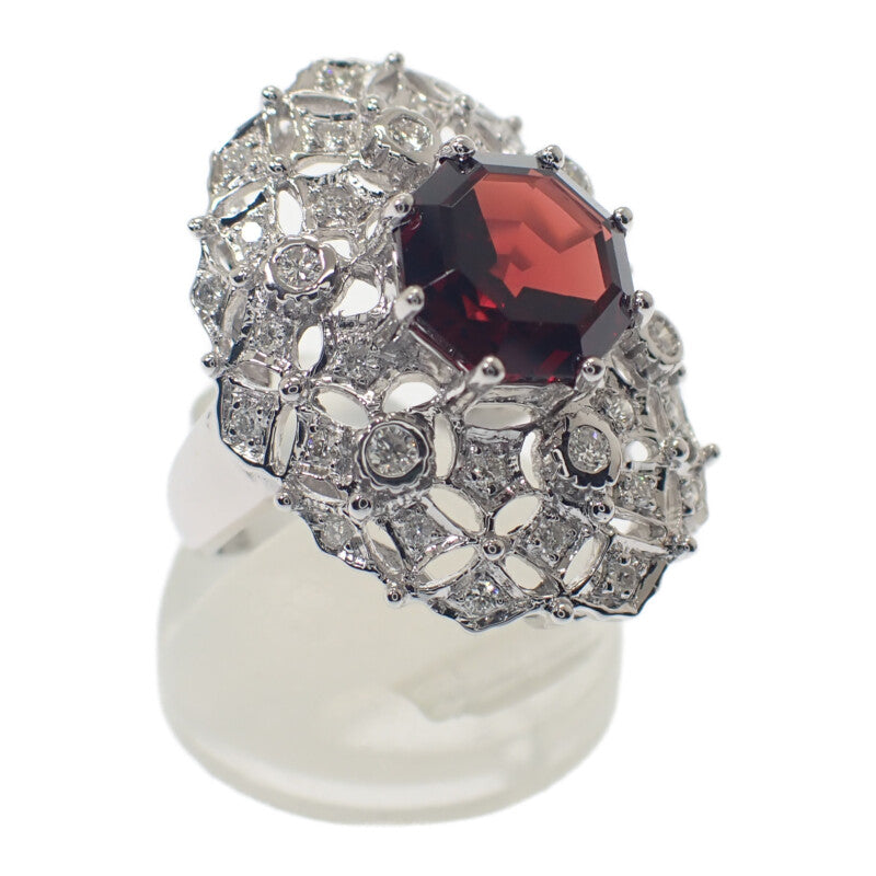 デザイン ジュエリー 9号 リング K18ホワイトゴールド ガーネット ダイヤモンド レディース【中古】【Aランク】