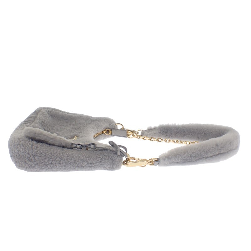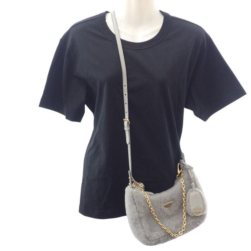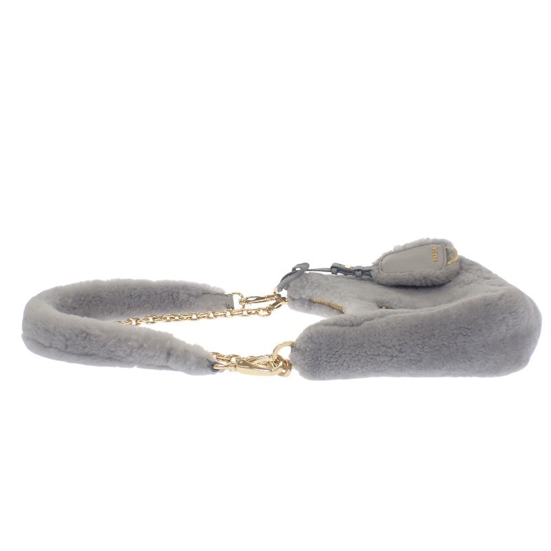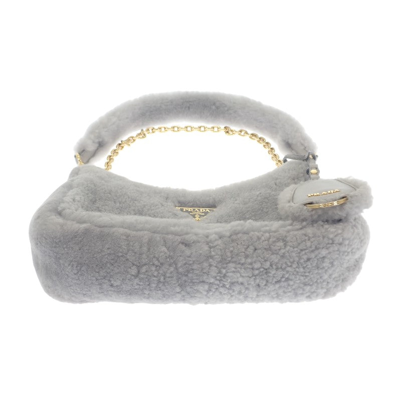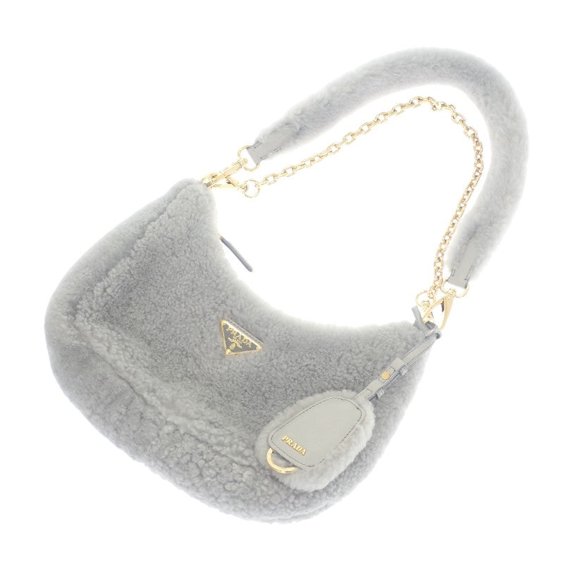 プラダ PRADA Re-Edition シアリング ミニ 1BC204 2EC9 F0591 ショルダーバッグ 3WAYバッグ ファー グレー ゴールド金具 レディース【中古】【ABランク】