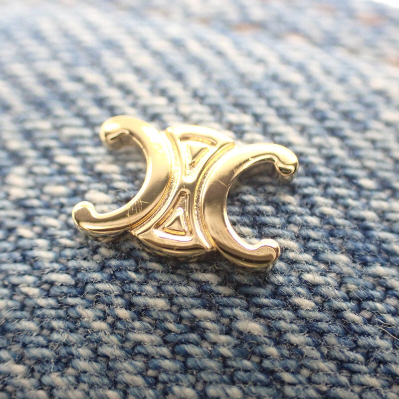 軽やかなブルーデニムをベースに、サイドへ上品に配されたゴールドトーンのトリオンフモチーフが、カジュアルさの中に洗練された華やぎを与えます。日常使いしやすい素材ながら、セリーヌならではの気品が宿るアイテムです。
