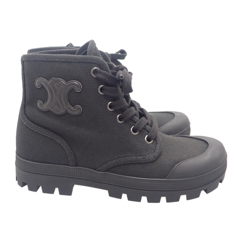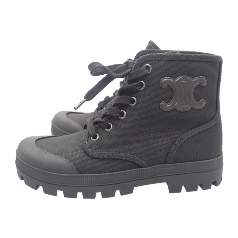 セリーヌ CELINE パタパンレースアップ ハイカット 343142198C.38NO スニーカー キャンバス レザー ブラック 35 レディース【中古】【Aランク】
