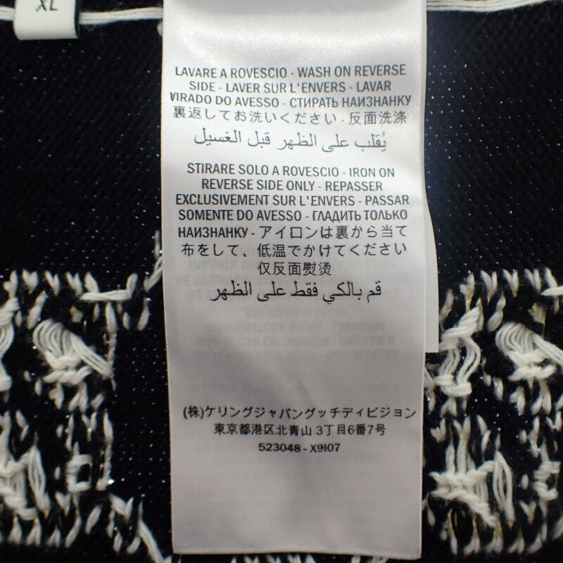 上質なコットン素材を使用した快適な着心地と、ブランドを象徴するGGジャガードが織り込まれたデザインが魅力の一枚。ネイビーを基調にしたボーダー柄がカジュアルさと上品さを兼ね備え、リラックス感のあるシルエットながら、グッチらしい高級感を漂わせるアイテムです。
