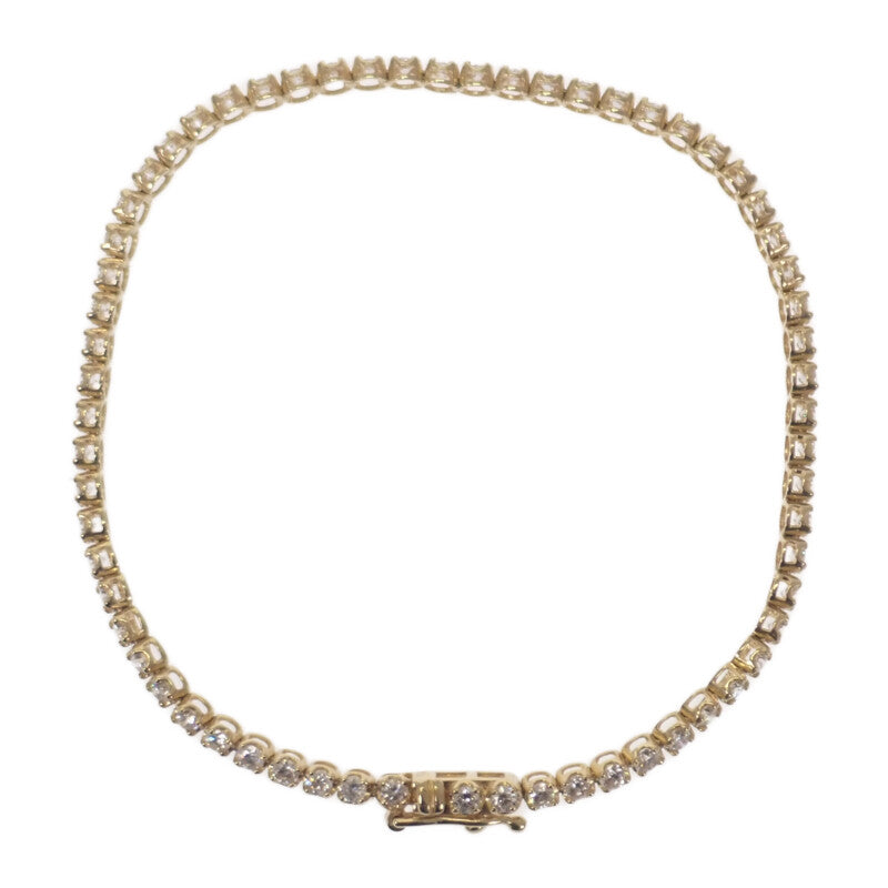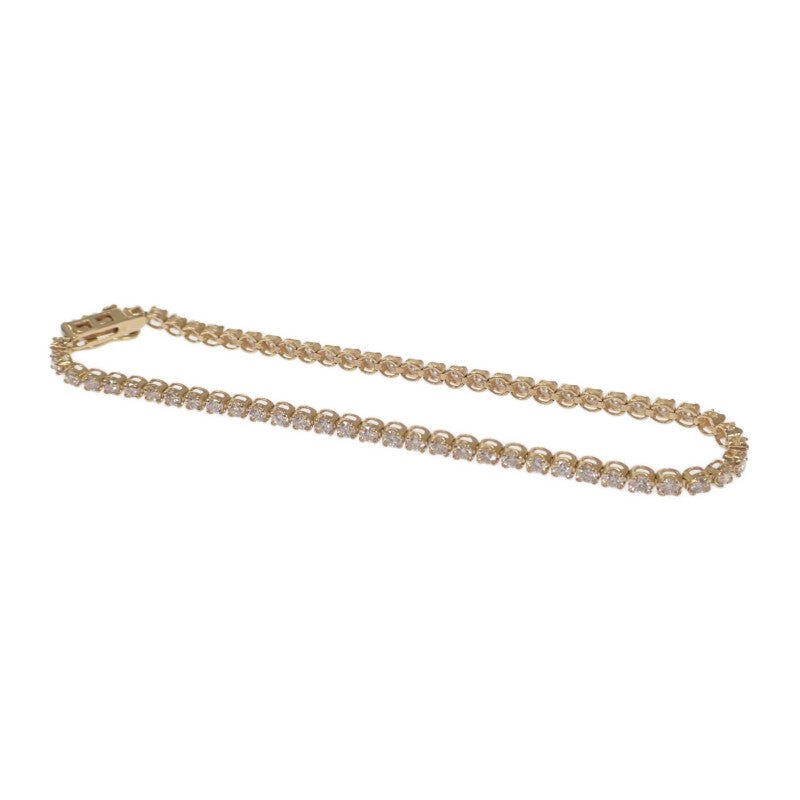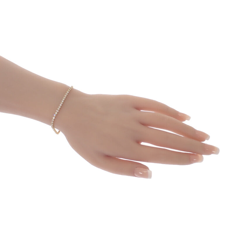 贅沢にあしらわれたダイヤモンドが、繊細なラインを描くように連なるK18イエローゴールドのテニスブレスレット。