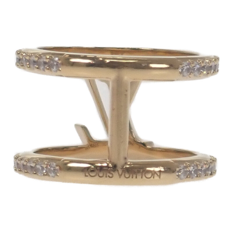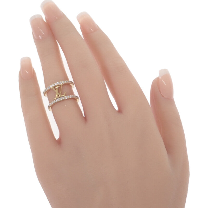 ブランドを象徴する「LV」イニシャルを中心に、洗練された輝きを放つラインストーンをあしらったラグジュアリーなリングです。