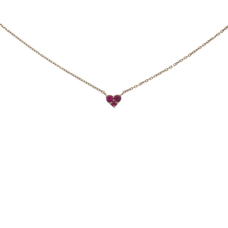 18金イエローゴールドの華奢なチェーンに3粒のルビーをハート型にをあしらった可憐なモチーフが、上品な輝きを首元にプラスします。