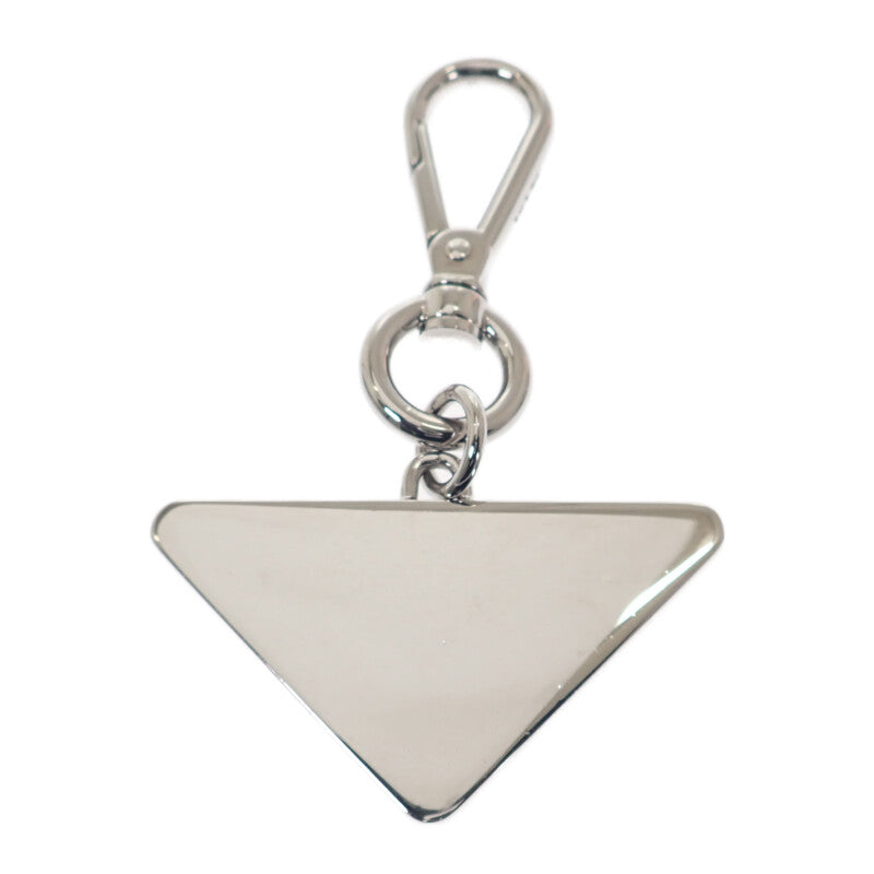 プラダを象徴するアイコニックなトライアングルロゴがあしらわれたキーリングです。