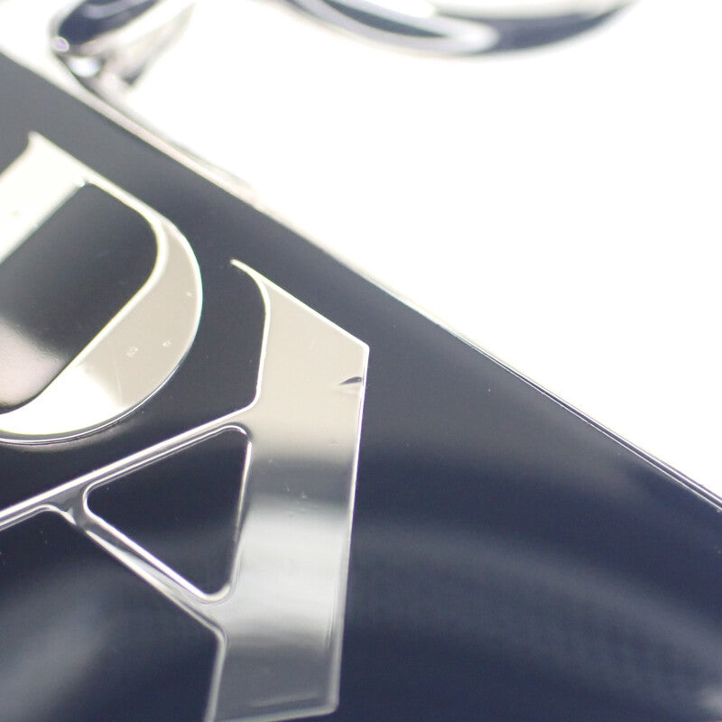上質なメタル素材に艶やかなエナメル仕上げが施されており、ブランドの世界観をさりげなく演出します。