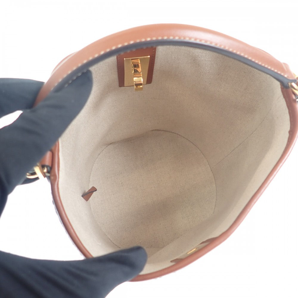 セリーヌ CELINE ティーンバケット16 197572ERF.01WB ショルダーバッグ キャンバス レザー ホワイト レディース【中古】【ABランク】