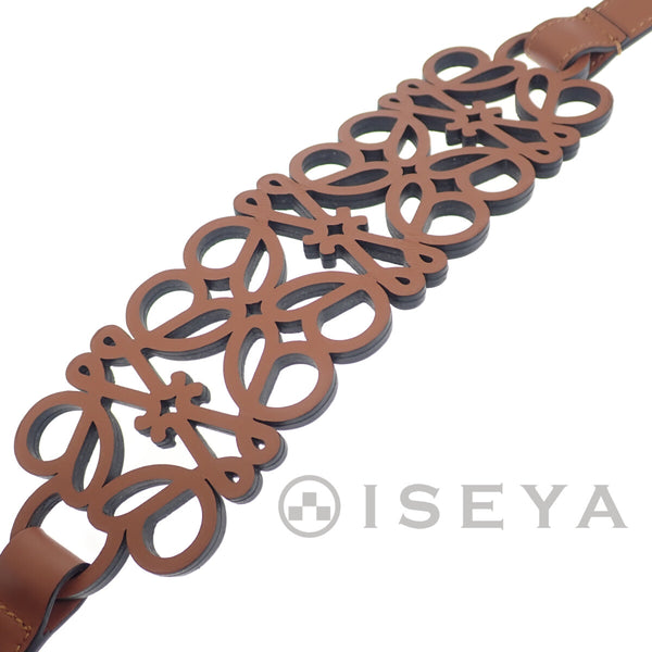 ロエベ LOEWE アルパカ F655SS1X02 マフラー ウール レザー キャメル レディース【中古】【SAランク】