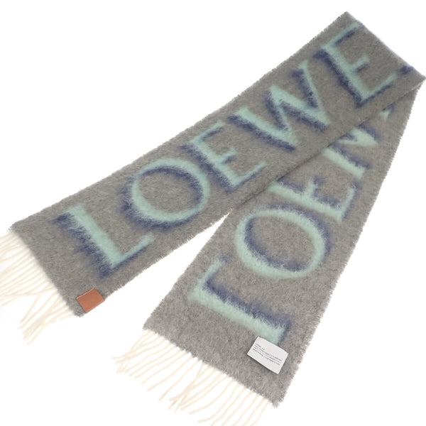 ロエベ LOEWE ロゴスカーフ マフラー ウール カシミヤ ネイビー ブラウン レディース メンズ ユニセックス【中古】【Aランク】