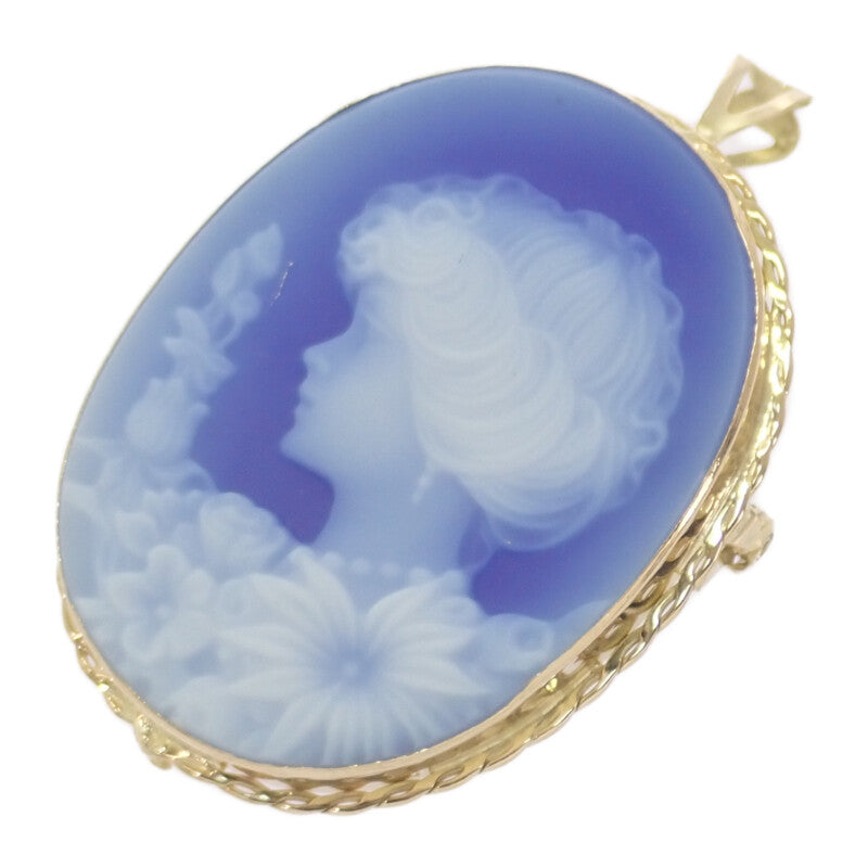 【中古】 K18 デザインジュエリー カメオ ブローチ K18イエローゴールド ブルー メノウ レディース【Aランク】