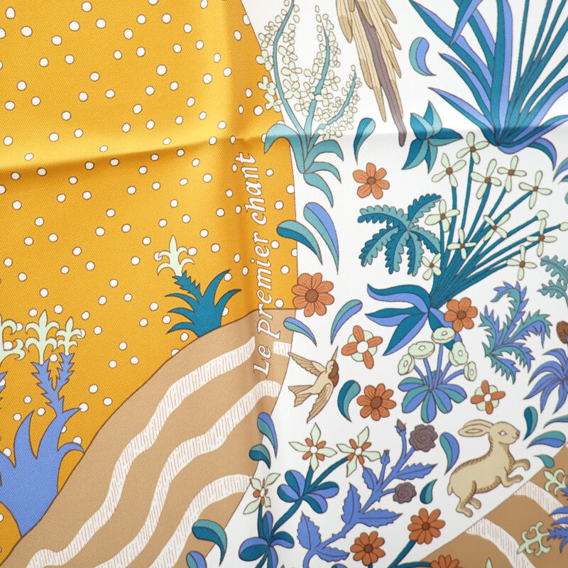 エルメス HERMES カレ90 Le Premier Chant スカーフ シルク イエロー レディース【中古】【Sランク】
