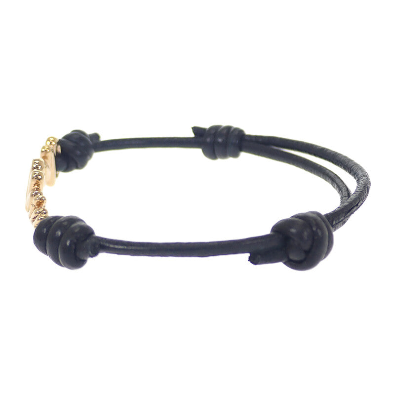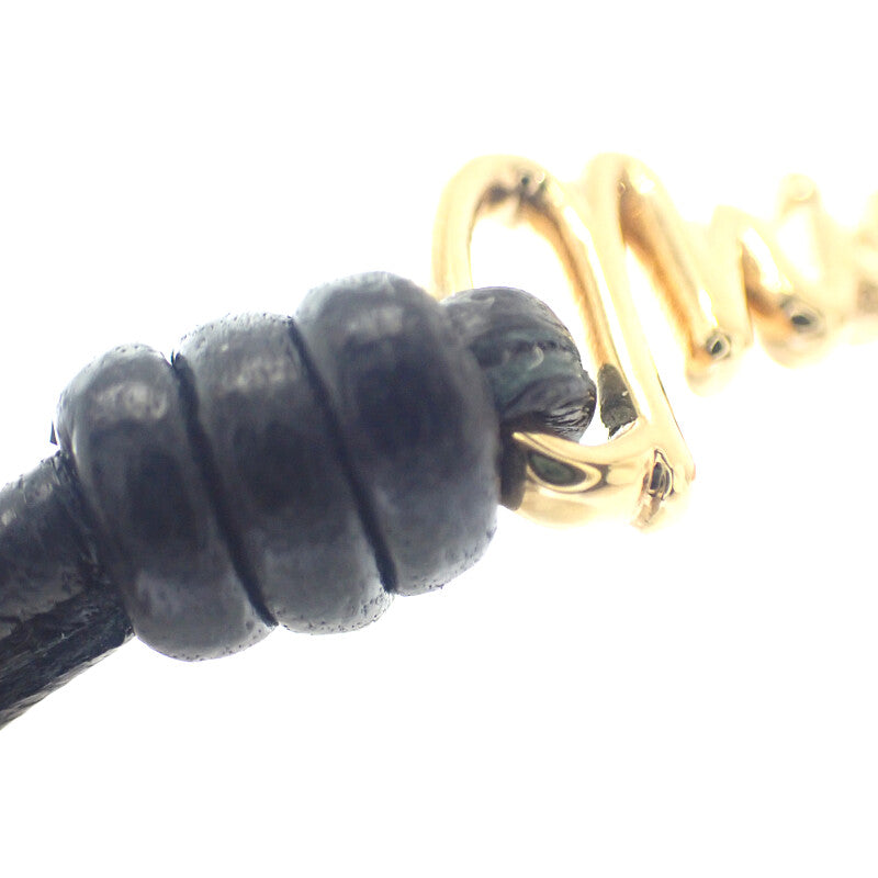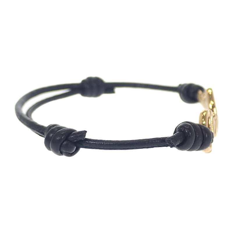 ミュウミュウ MIUMIU ロゴ レザー 5IB4012F33 ブレスレット メタル レザー ナッパレザー ゴールド ブラック レディース【中古】【Aランク】