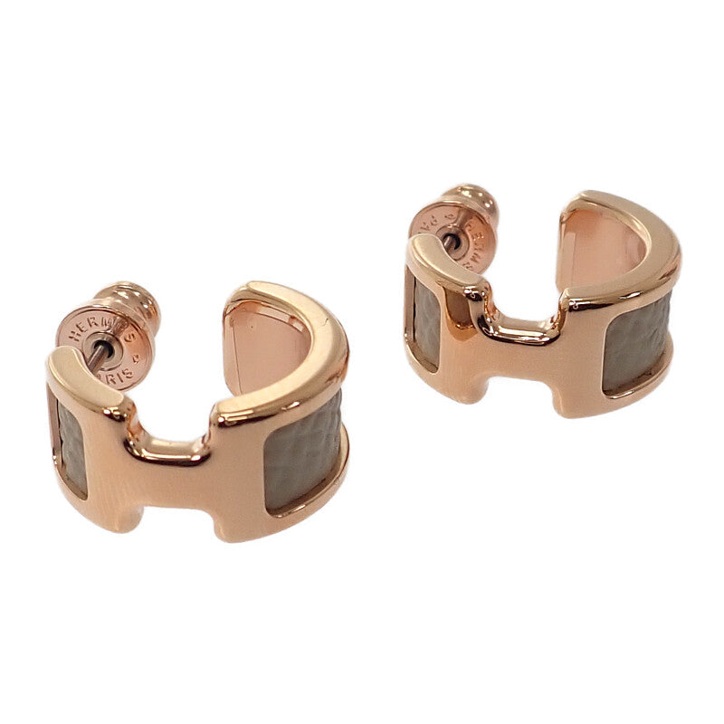 エルメス HERMES オランプPM ピアス メタル ヴォーエプソン エトゥープ ピンクゴールド ベージュ レディース【中古】【Aランク】