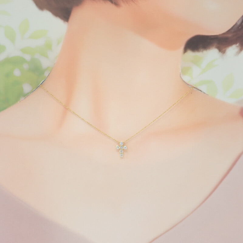 18Kイエローゴールドの温もりある輝きと、繊細にセッティングされたダイヤモンドの上品なきらめきが融合し、シンプルながらも気品に満ちた印象を演出します。クロスモチーフは信頼と永遠を象徴し、デイリーからフォーマルまで幅広く活躍。ギメルらしい確かな技術と美意識が光る、タイムレスな逸品です。