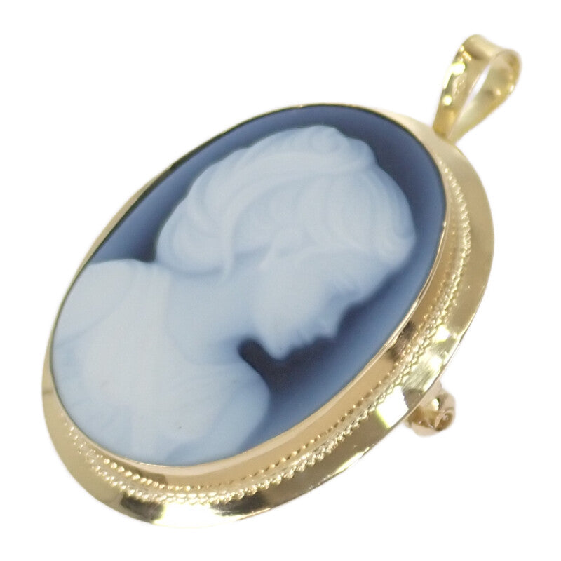 【中古】 K18 デザインジュエリー カメオ ブローチ K18イエローゴールド ネイビー メノウ レディース【Aランク】