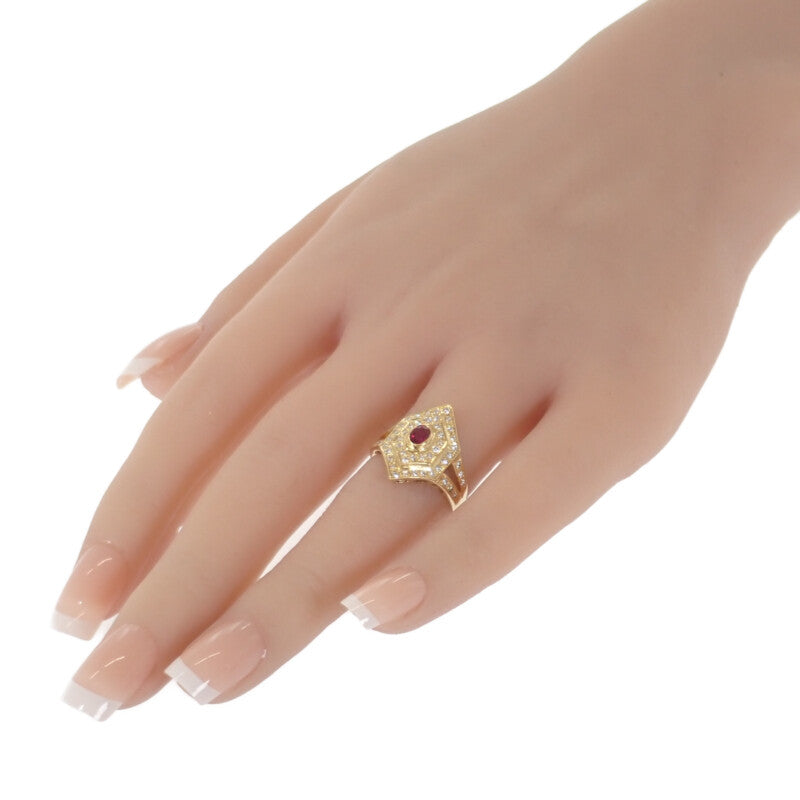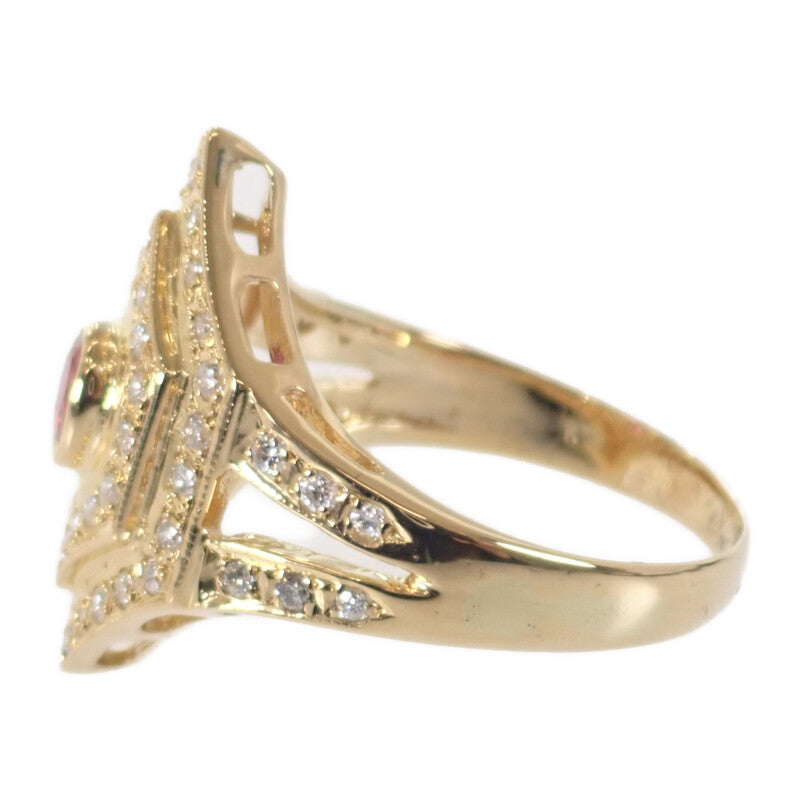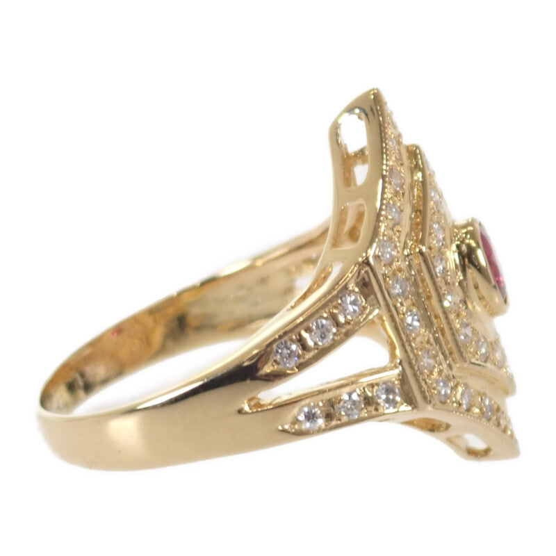 K18YG デザインジュエリー リング K18イエローゴールド 11号 ルビー ダイヤモンド レディース【中古】【Aランク】
