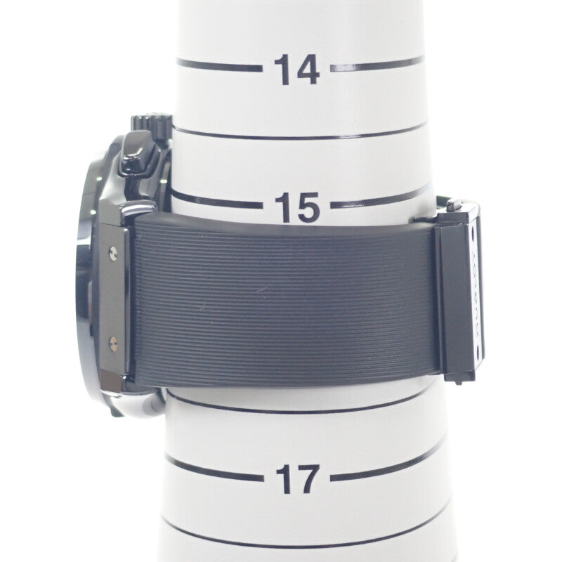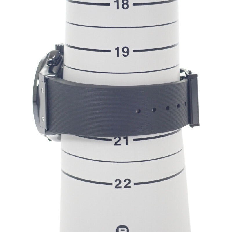 ケースやベゼル、ラバーベルト、文字盤はブラックで統一されており、シンプルながらもシックでメカニカルな雰囲気を感じられます。