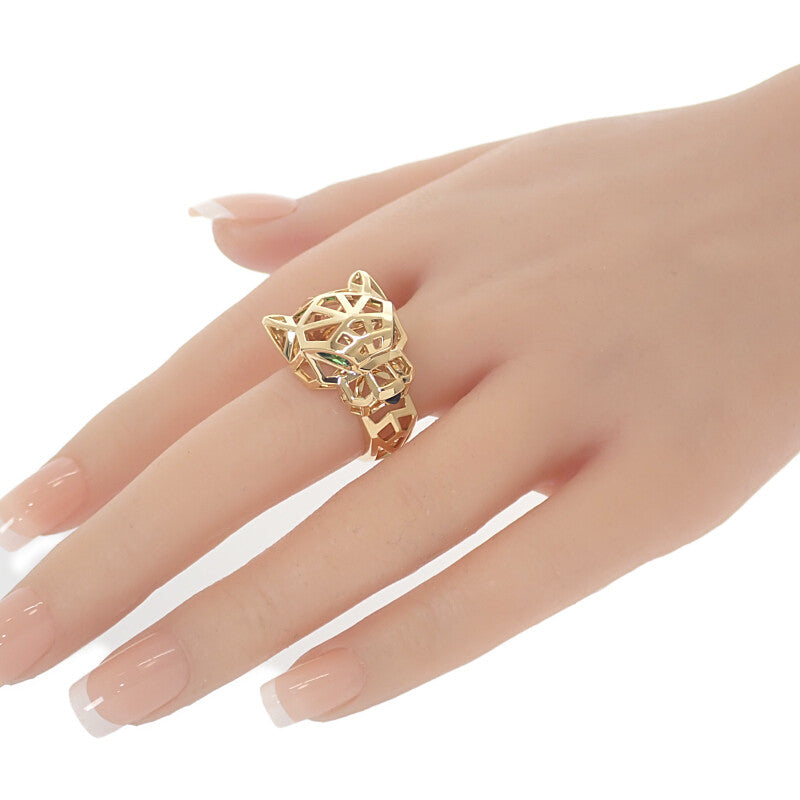 カルティエ CARTIER パンテール ドゥ カルティエ 15.5号 N4767900 リング K18イエローゴールド オニキス ツァボライトガーネット #57 メンズ レディース【中古】【Aランク】