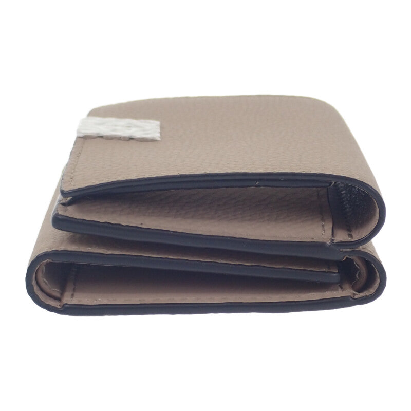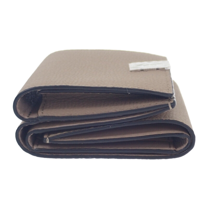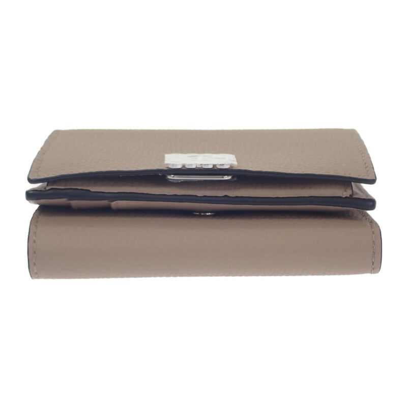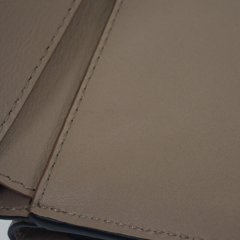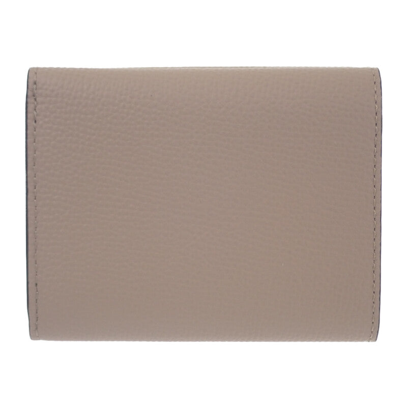 アイコニックなアナグラムをさりげなくあしらった三つ折り財布。手に馴染む柔らかなカーフスキンとサンドベージュのナチュラルな色合いが魅力です。コンパクトながらカード・コイン・紙幣をすっきり収納できる実用性も兼備。