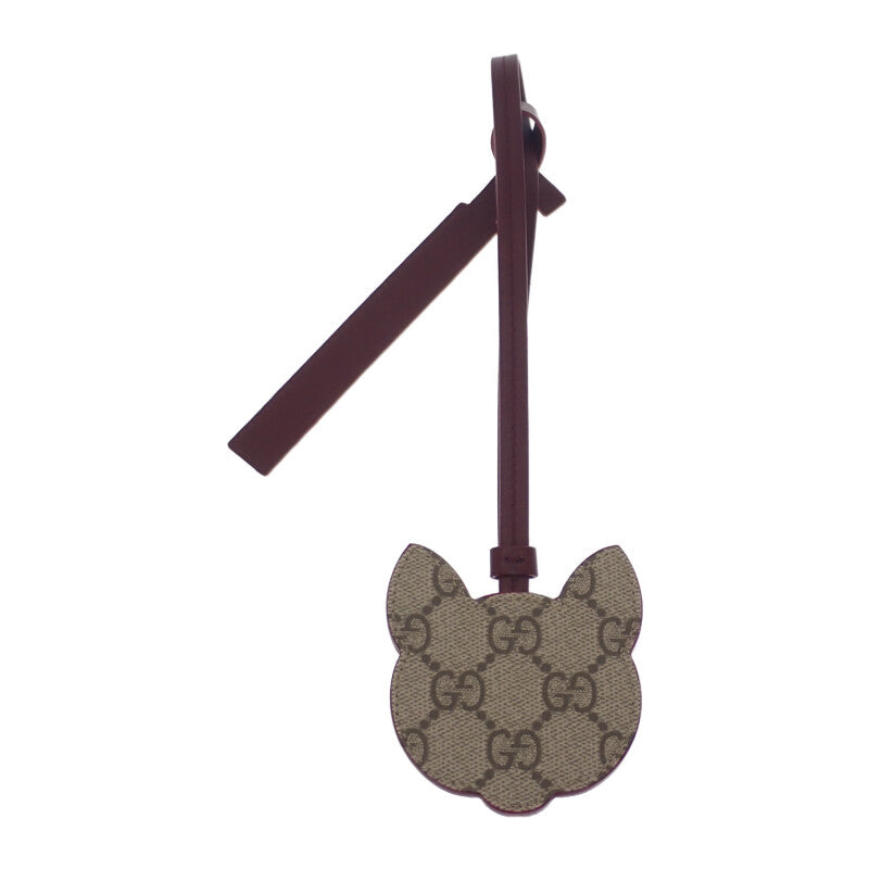 グッチ GUCCI キャットシェイプ ‎820787_FAEC9_9782 バッグチャーム ポリウレタン レザー ベージュ ボルドー レディース【中古】【Aランク】