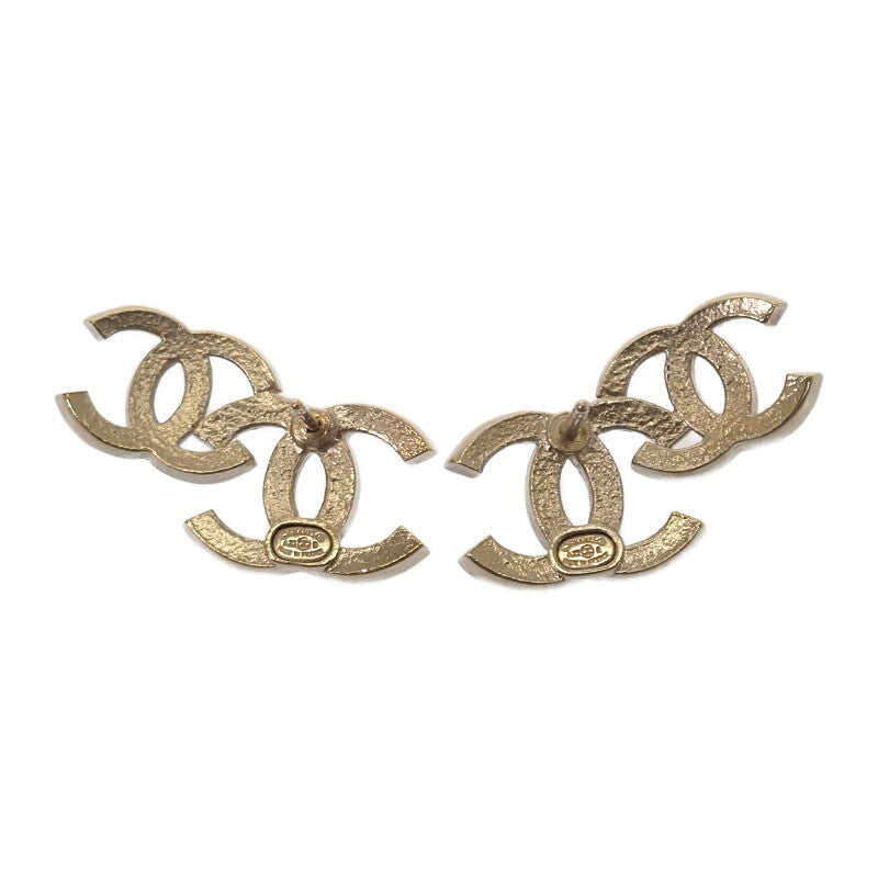 シャネル CHANEL ダブルココマーク A22B刻印 ピアス メタル ラインストーン ゴールド ブラック ホワイト レディース【中古】【Aランク】