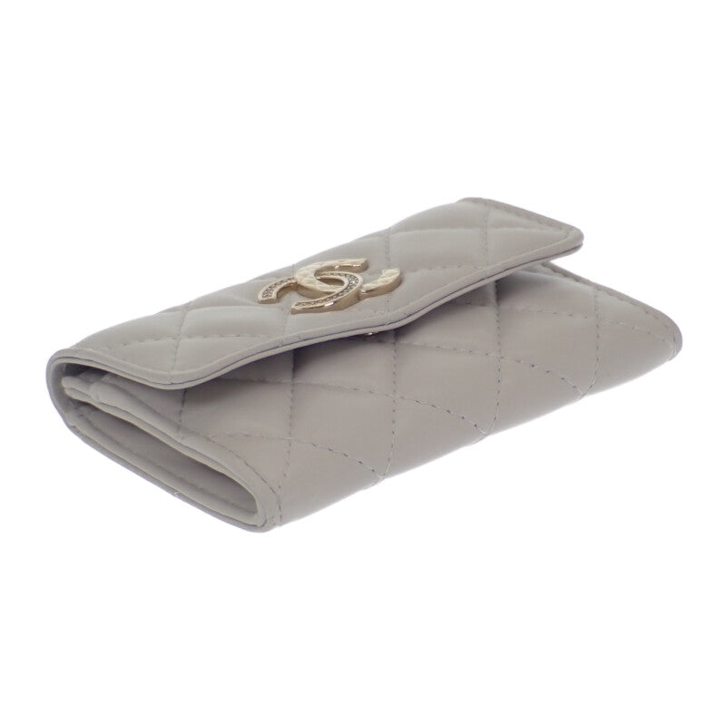 シャネル CHANEL フラップ AP4342 カードケース ラムスキン ライトグレー ゴールド金具 レディース【中古】【Aランク】