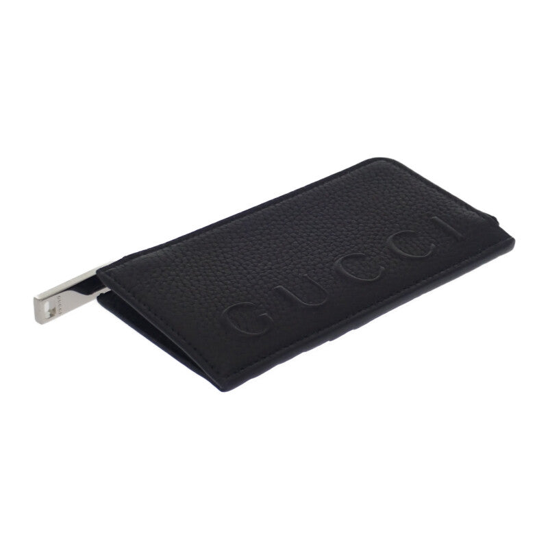 グッチ GUCCI ロゴ ジップ 835073AAE1W1000 カードケース カーフスキン ブラック シルバー金具 メンズ【中古】【Aランク】