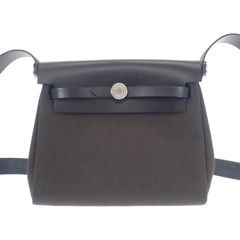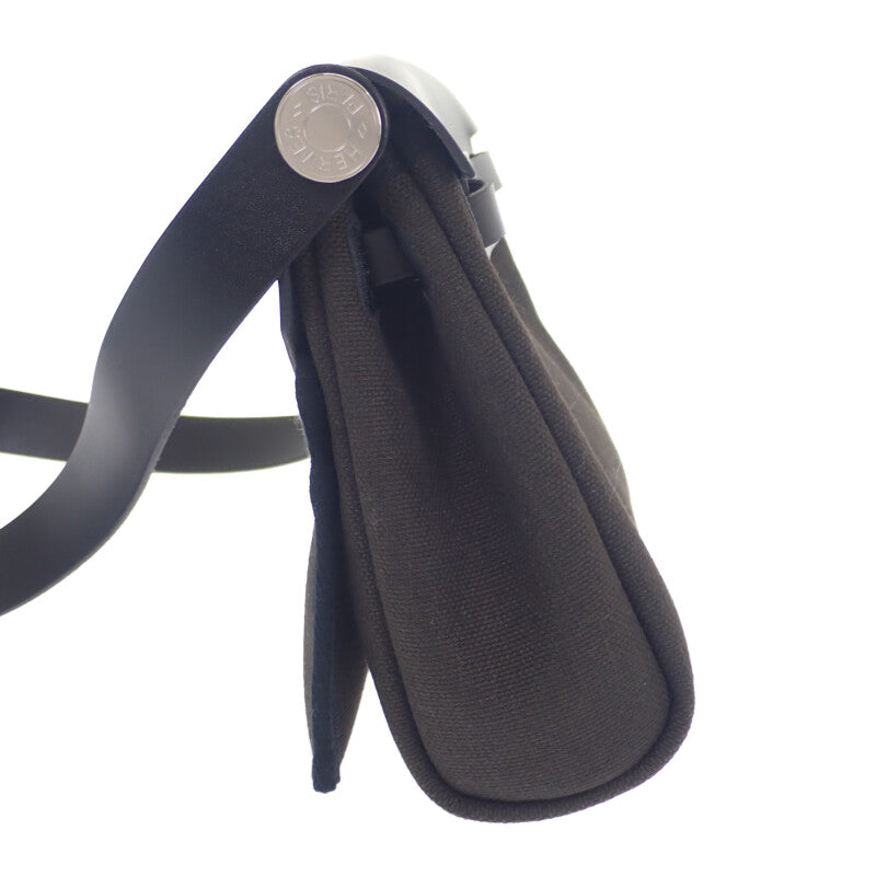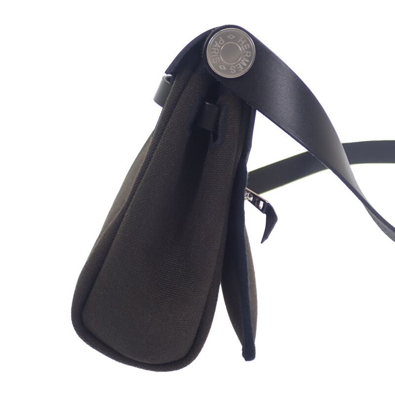 エルメス HERMES エールバッグジップミニ W刻印 ショルダーバッグ ヴァッシュハンター トワルミリタリー ダークブロンズ シルバー金具 レディース【中古】【Aランク】