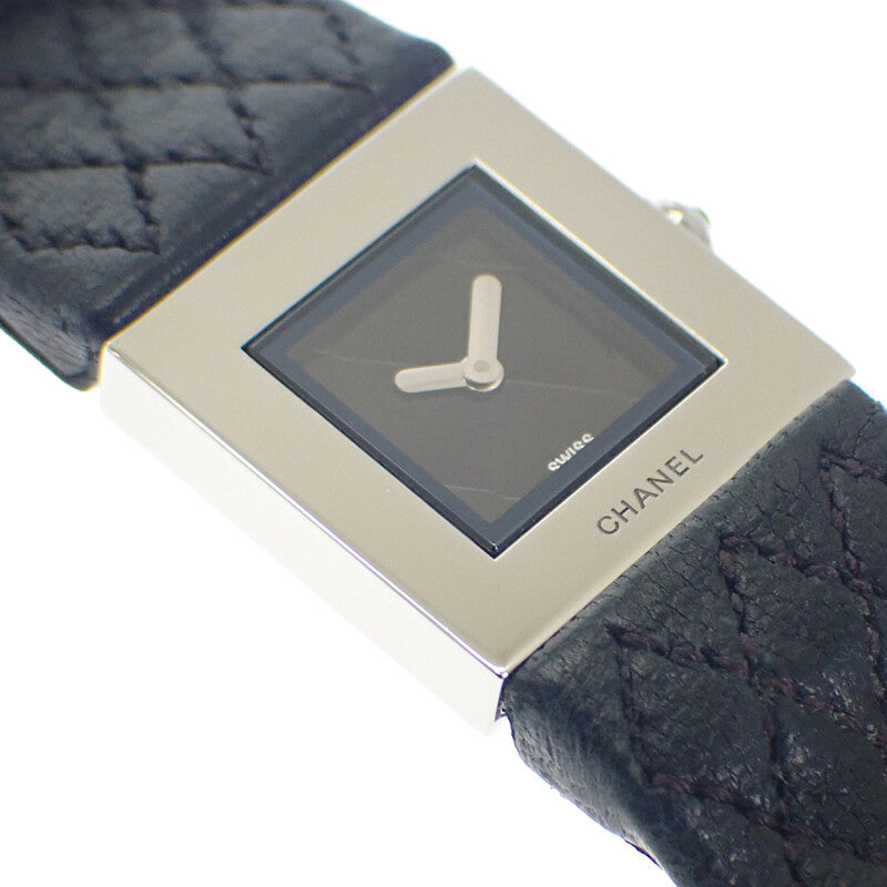 シャネル CHANEL マトラッセ H0116 腕時計 ステンレススチール レザー ブラック シルバー クオーツ ブラック文字盤 シルバー金具 レディース【中古】【ABランク】