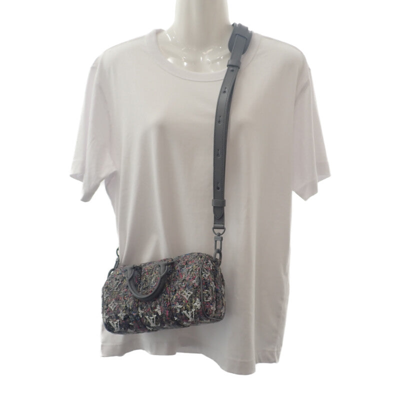 グレーのフェルト素材をベースに、レザーハンドルとディテールで上品さをプラス。柔らかい質感とコンパクトなサイズ感ながら、必要な小物をしっかり収納可能。ショルダーストラップ付きで、ハンドバッグとしてもショルダーバッグとしても使用できる2WAY仕様です。カジュアルな雰囲気とラグジュアリーさが融合した、都会的なスタイルを演出します。