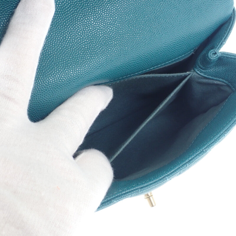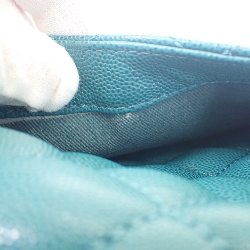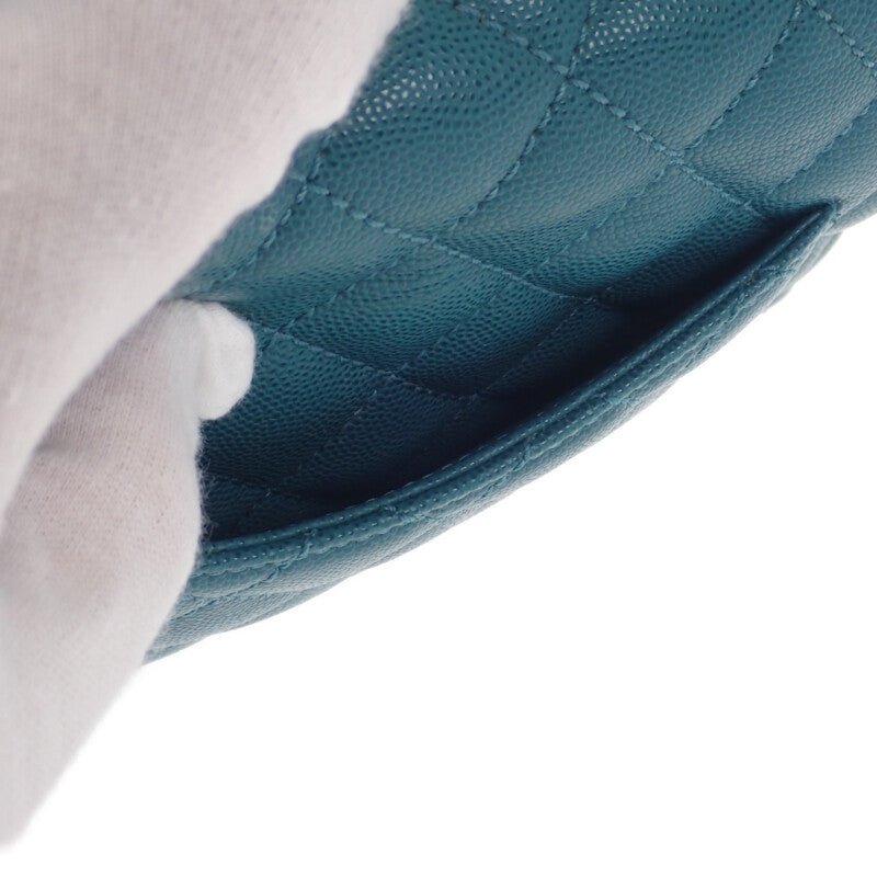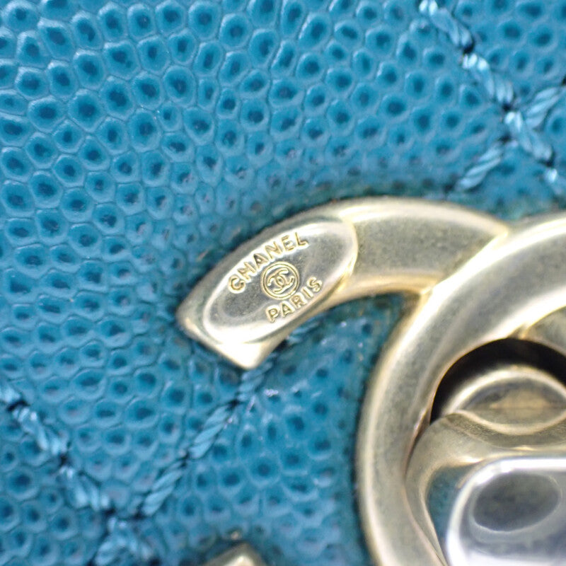 定番のキャビアスキンで仕立てられ、フロントにはクラシックなゴールドトーンのCCターンロックが映えるエレガントなデザインです。