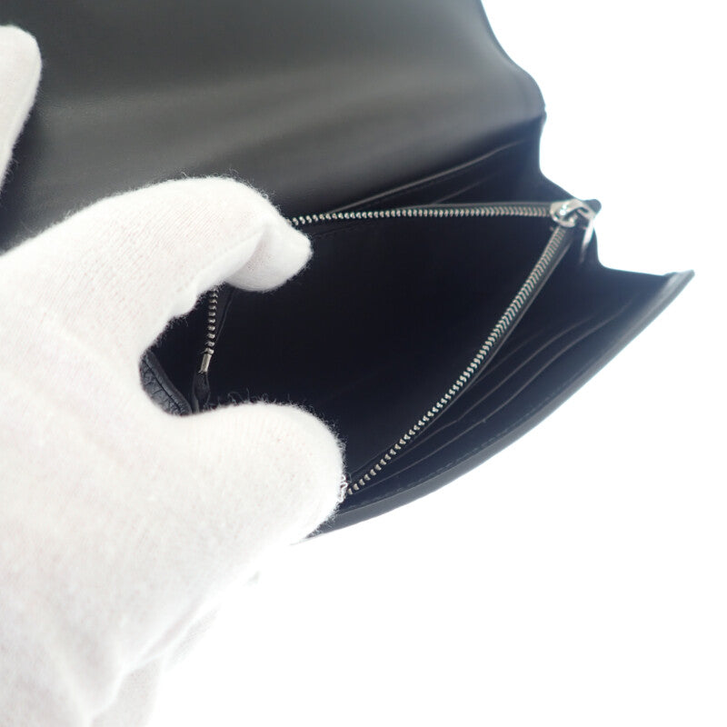 滑らかな質感が魅力のカーフスキンを贅沢に使用し、フラップには象徴的なCDアイコンがあしらわれ、シンプルでありながら確かな存在感を放つ逸品です。内装は複数のカードスロットや札入れ、ファスナー付きポケットなど、充実した収納力を備え、機能性と美しさを両立したユニセックス仕様。ブラック×シルバー金具の組み合わせは、どんなスタイルにも馴染むタイムレスなカラーリングです。