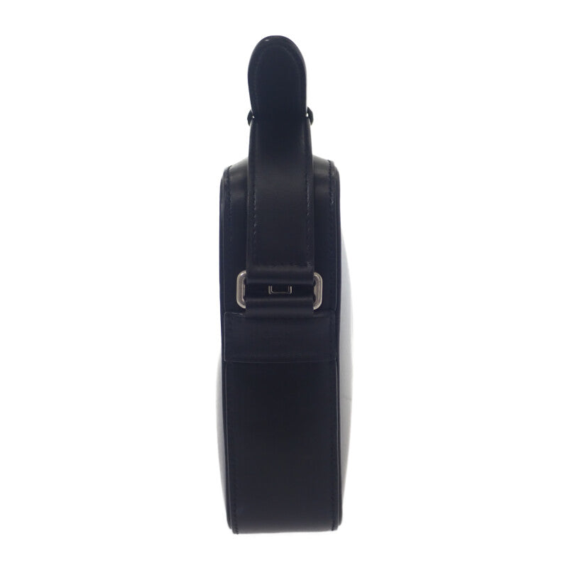 ブラックとホワイトのカラーリングにシンプルなロゴデザインが印象的なショルダーバッグ。