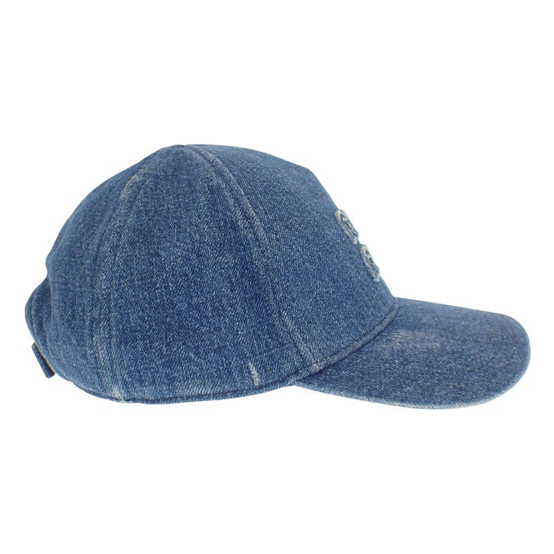 デニム素材でカジュアルながらも、同色の刺繍のロゴがアイコニックなタッチを添えています。