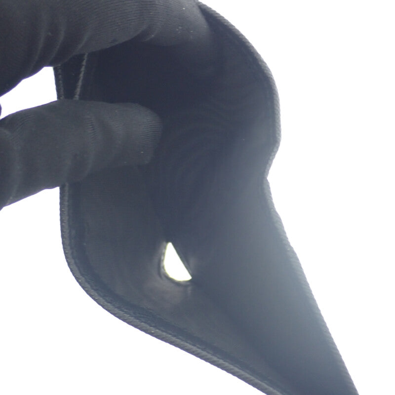 ブランドを象徴する再生ナイロン素材“Re-Nylon”とサフィアーノレザーを組み合わせた、モダンでサステナブルなデザインが魅力。ブラックにシルバー金具、そしてトライアングルロゴが映える洗練されたルックス。コンパクトながらカードスロットや紙幣入れなど収納力も十分で、ユニセックスで愛用できる一品です。