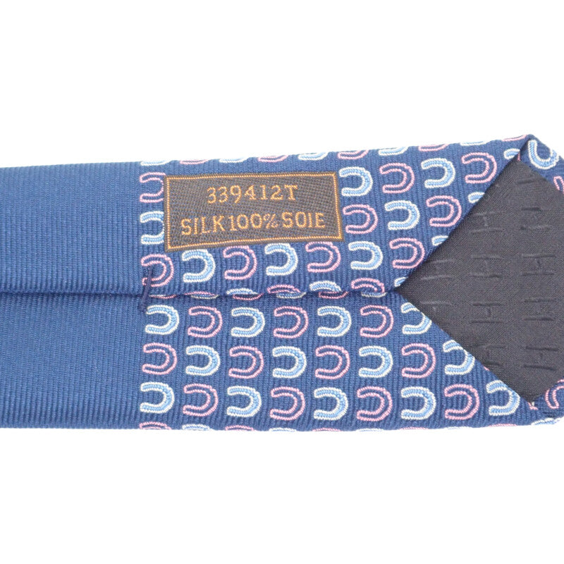 エルメス HERMES シルクタイ グッドラック H339412T04 ネクタイ シルク マリン ピンク シエル メンズ【中古】【Sランク】