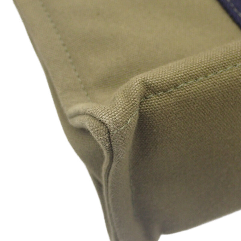上質なキャンバス素材とカーキカラーが、カジュアルながらも洗練された印象を与えるハンドバッグ。コンパクトなサイズ感で日常使いに最適、ユニセックスで楽しめる逸品です。