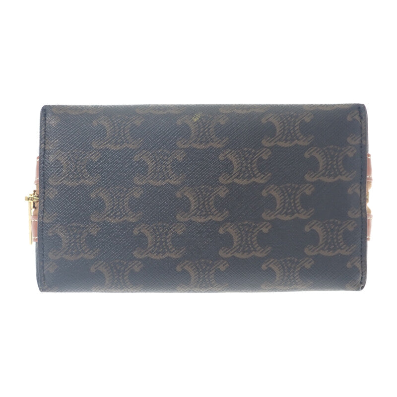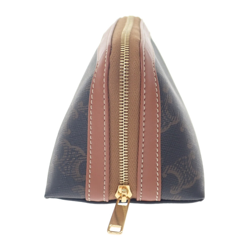 セリーヌ CELINE スモール コスメティック 4M1622CZJ-04LU ポーチ カーフ トリオンフキャンバス ブラウン ブラック レディース【中古】【SAランク】