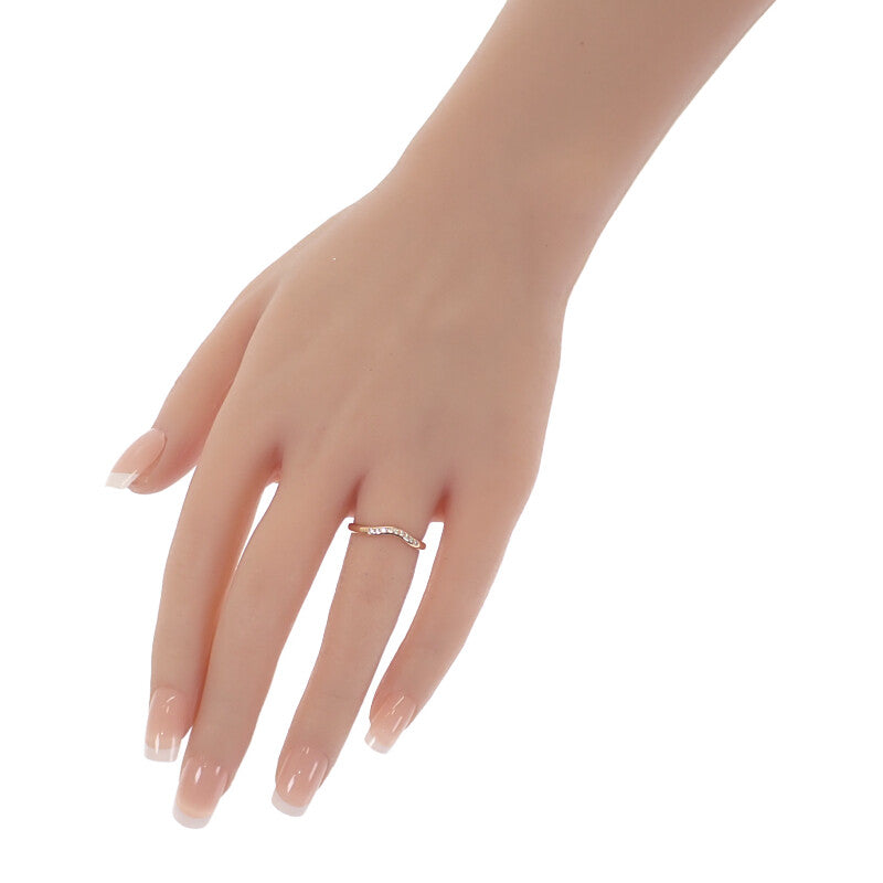 流れるような美しいカーブラインが指元に優雅な印象を与え、ピンクゴールドの温かみのある色味が肌なじみよく、女性らしさを引き立てます。リングにはダイヤモンドがセッティングされ、さりげない輝きが手元を華やかに演出します。ティファニーならではの洗練されたデザインで、単体ではもちろん、重ね着けにもぴったりの一本です。
