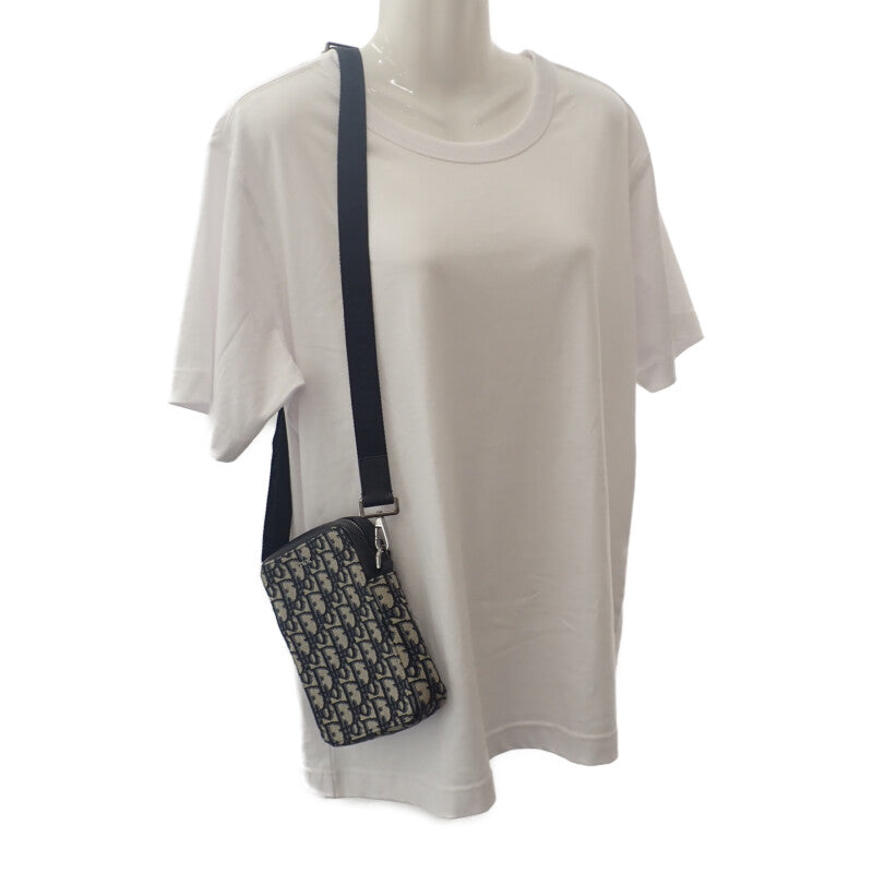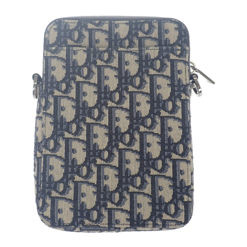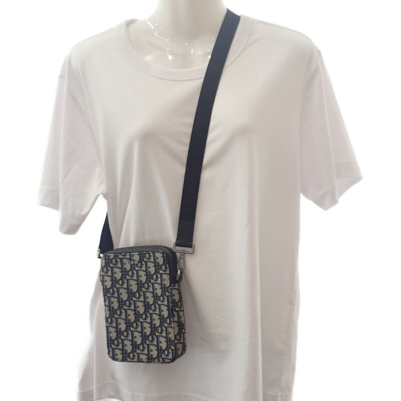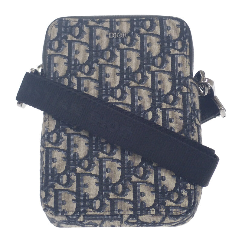 ディオール Dior メッセンジャーポーチ オブリーク ジャガード 2ESBC265YSE-H05E ショルダーバッグ キャンバス レザー ネイビー ベージュ レディース メンズ【中古】【Aランク】