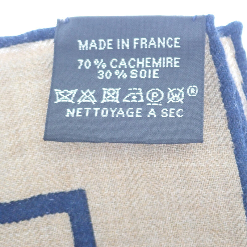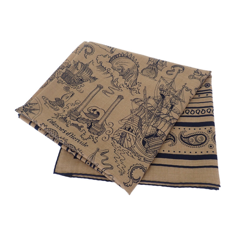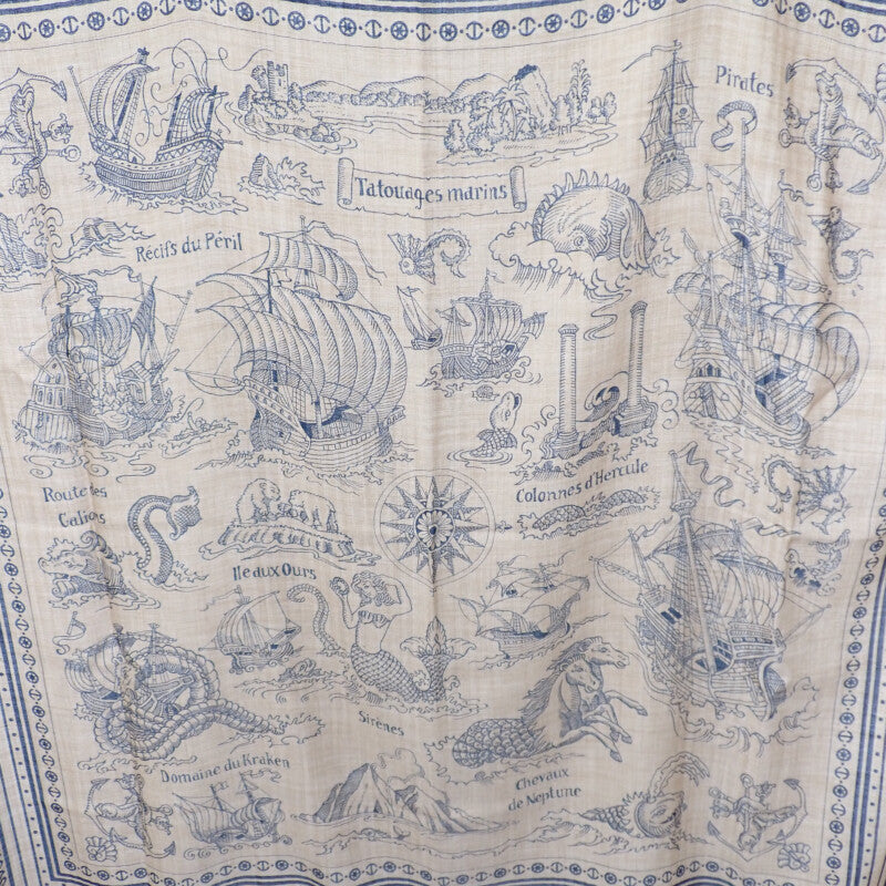 エルメス HERMES カレジェアン140 船乗りのタトゥー バンダナ スカーフ カシミヤ シルク ベージュ ネイビー レディース【中古】【Aランク】