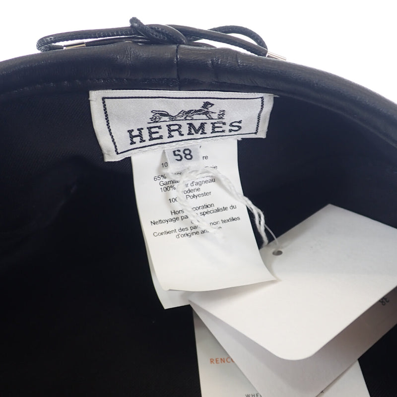 エルメス HERMES サントノーレチャーム 58 H212010N_GF58 ベレー帽 カシミヤ レザー CHARBON グレー レディース【中古】【Sランク】