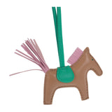 ブラウンをベースに鞍はグリーン、たてがみはパープルがアクセントになっており、バッグやキーホルダーなどにつけれお使い頂けます。