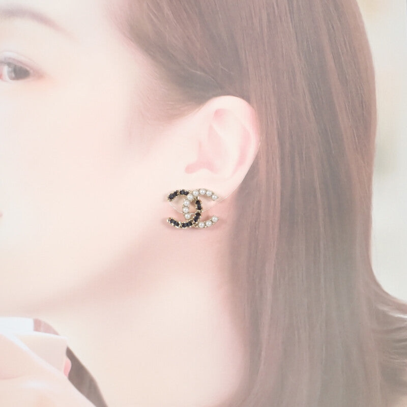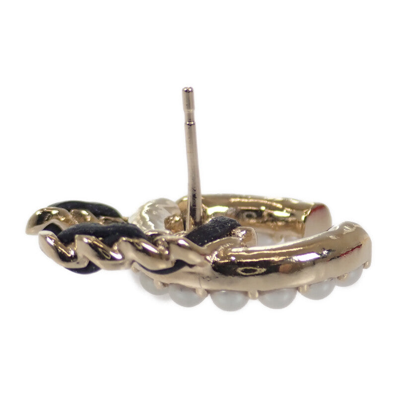 シャネル CHANEL ココマーク チェーンピアス B22B刻印 AB8703 ピアス メタル レザー フェイクパール ブラック ホワイト ゴールド金具 レディース【中古】【Aランク】